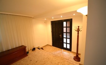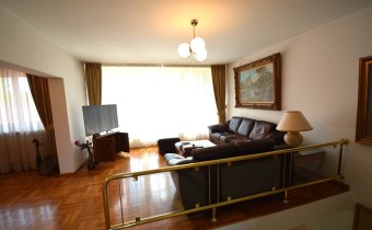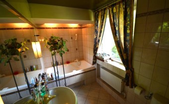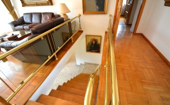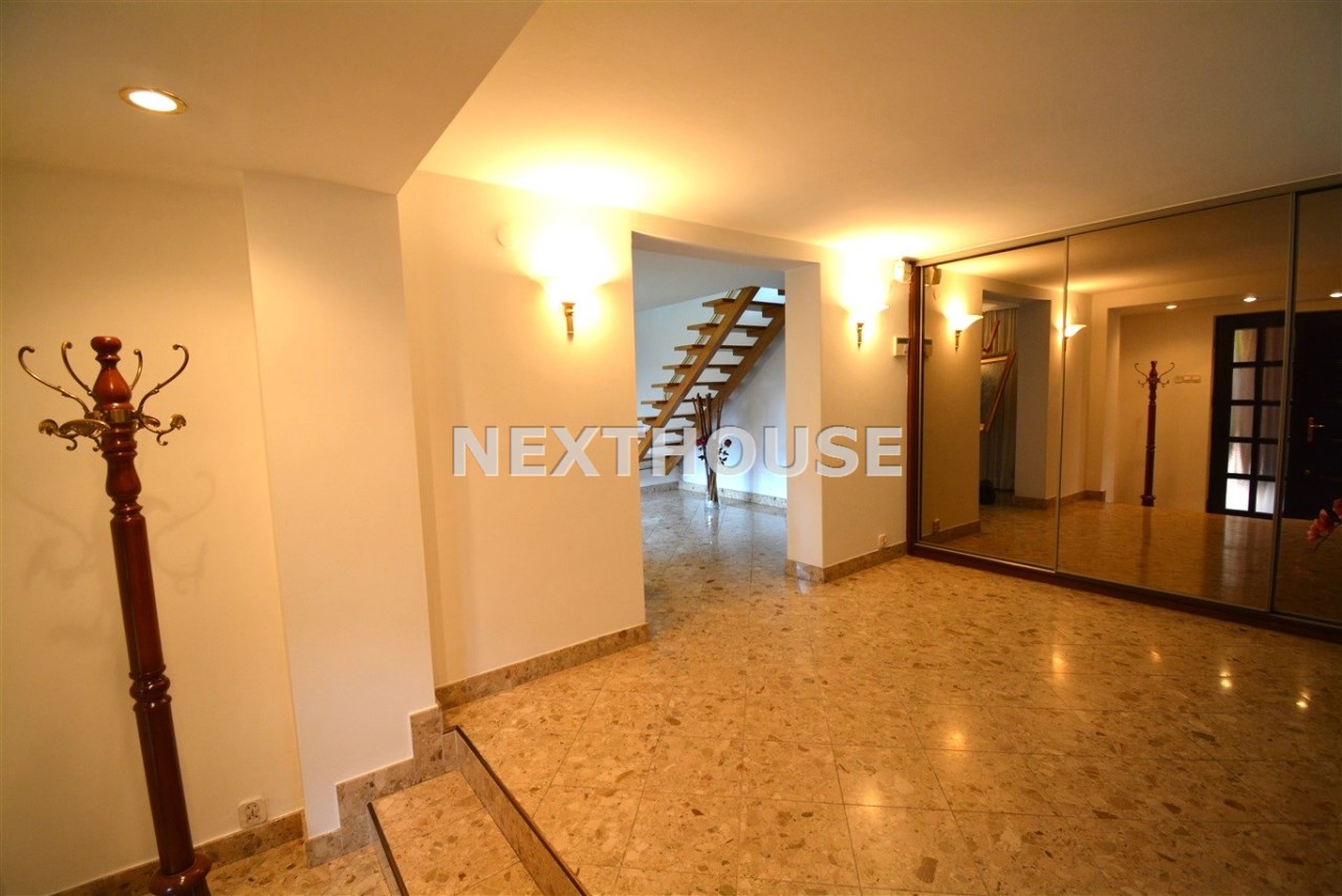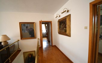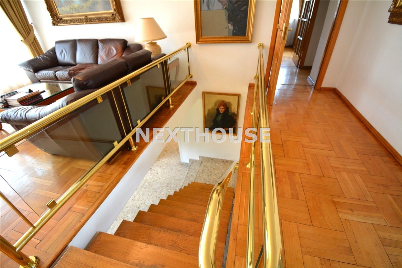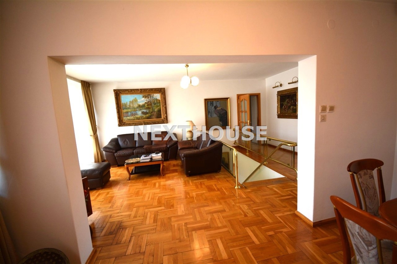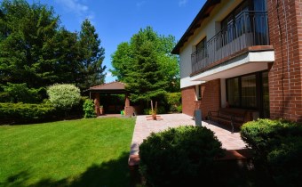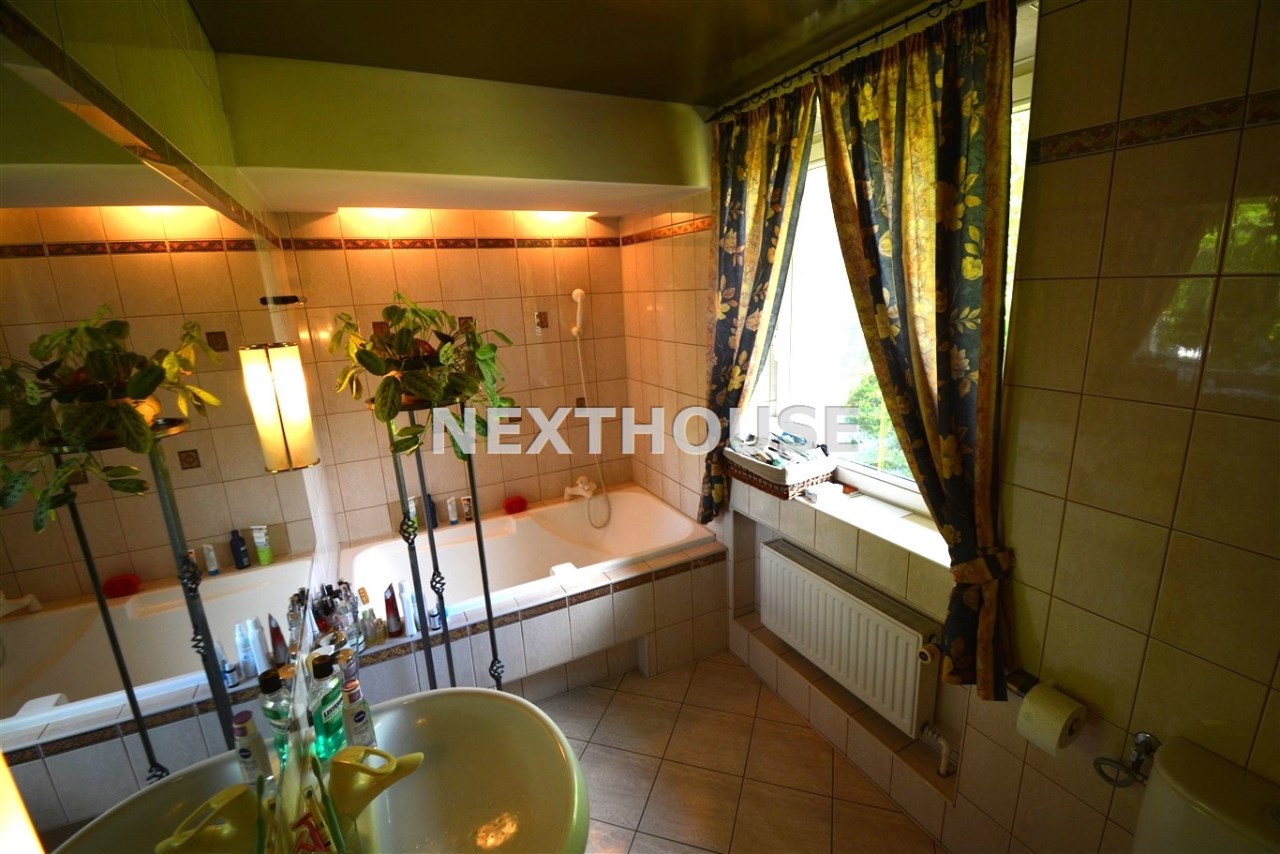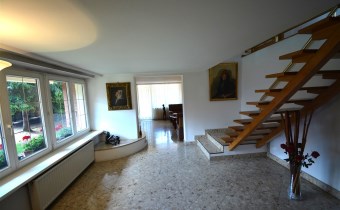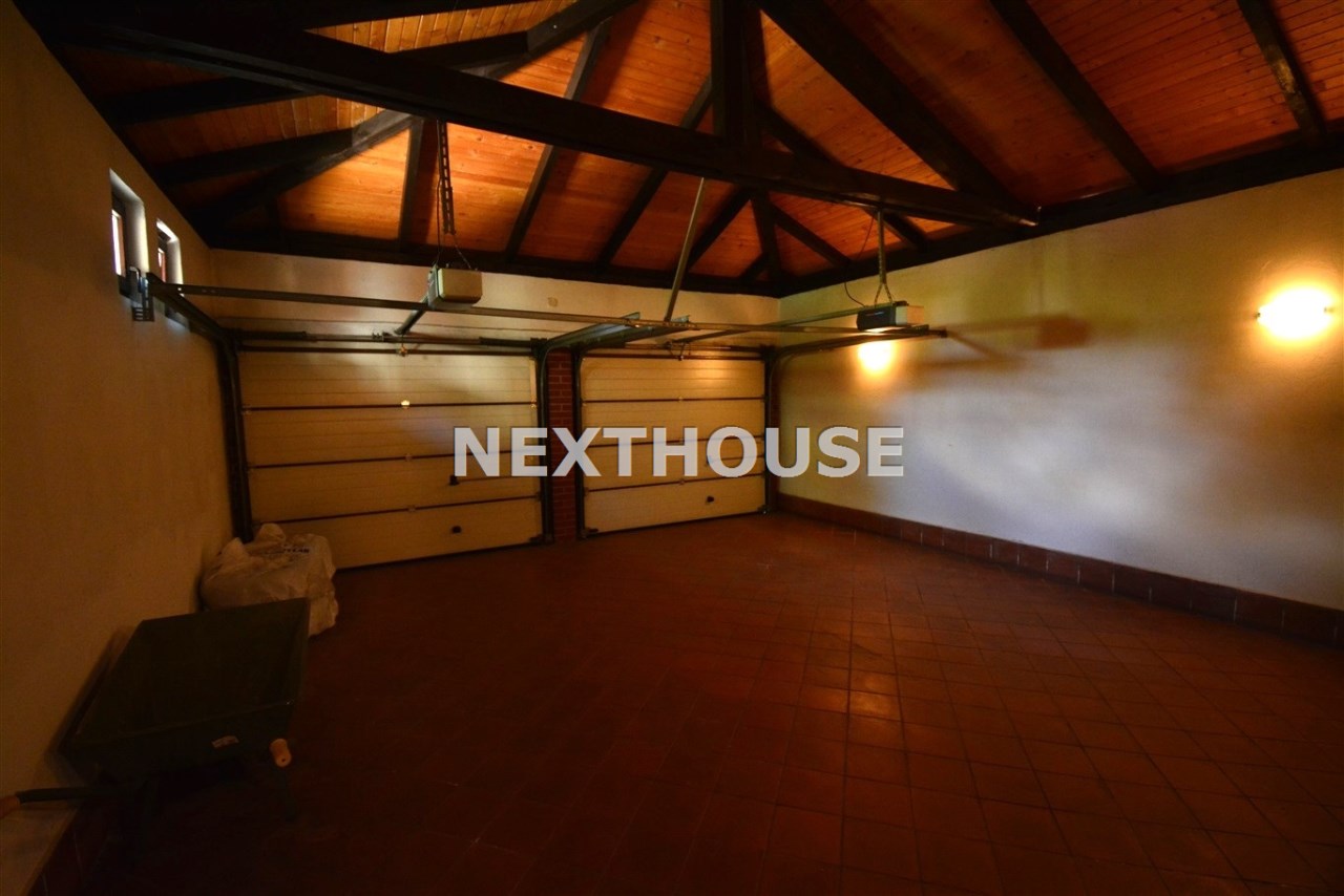 Na parterze znajduje się salon z kominkiem i wyjściem na taras prowadzący do ogrodu, gabinet, łazienka, pralnia, kotłownia oraz pomieszczenie gospodarcze. Duży hall dodaje klasy i przestronności. Piętro to otwarty salon z jadalnią, sypialnia z balkonem, garderoba, kuchnia oraz dodatkowy pokój. Przed domem znajduje się murowany garaż ,który pomieści nawet trzy auta – idealne rozwiązanie dla większej rodziny lub potrzeb firmy.