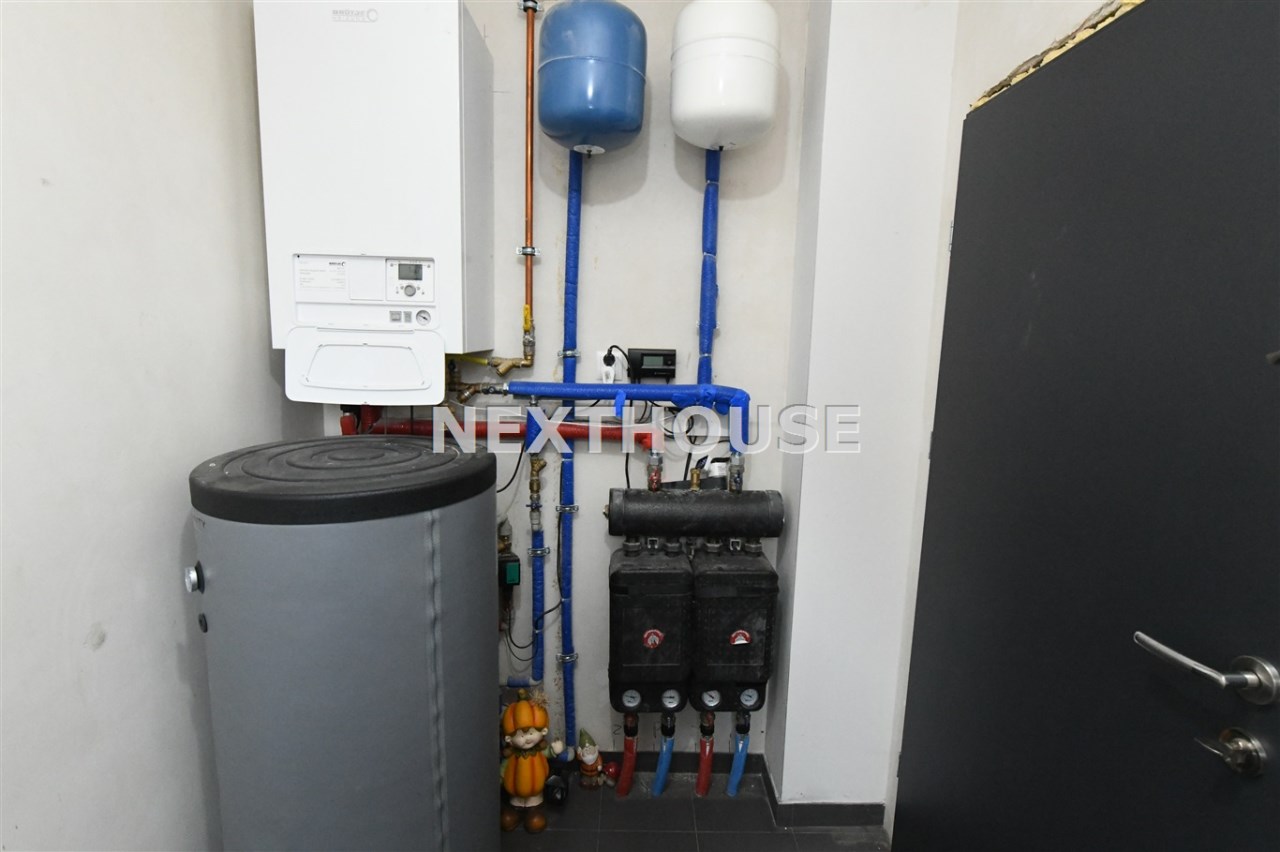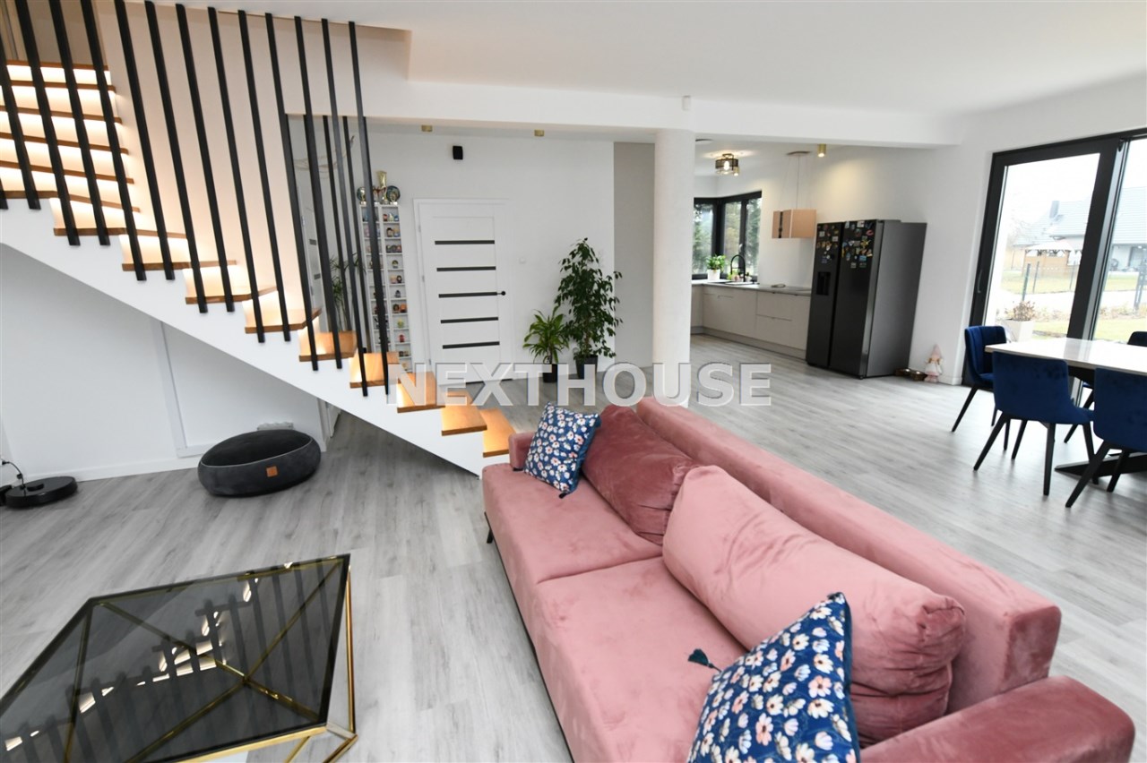 Dom wyróżnia się nowoczesnymi rozwiązaniami, takimi jak rekuperacja i ogrzewanie podłogowe/panele winylowe i gres na podłogach/ z osobnymi regulatorami temperatury w każdym pokoju.Wyprowadzone zostały instalacje pod klimatyzację oraz światłowód. Alarm,automatycznie sterowane rolety /parter i piętro/ oraz inteligentny system Smart, pozwalają na pełną kontrolę nad mediami i roletami, z możliwością dalszej rozbudowy. Na terenie ogrodu znajdują się dwa zbiorniki na deszczówkę, co wspiera ekologiczne podejście do zarządzania i magazynowania wodą.