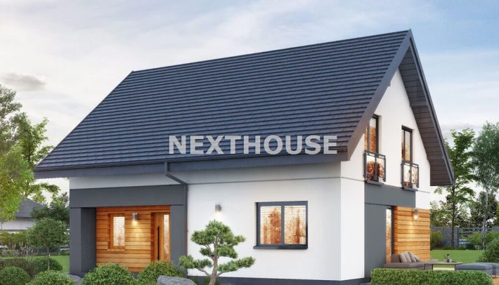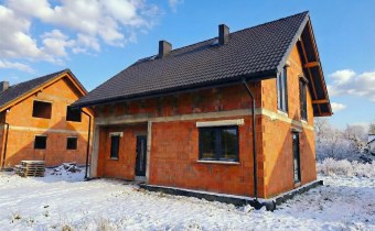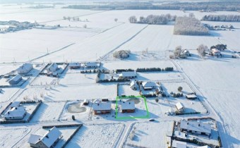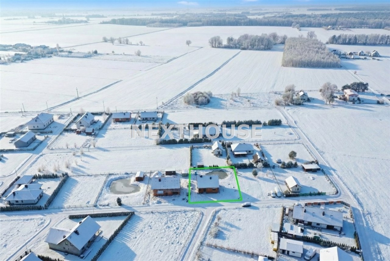 Dom usytuowany na nowym osiedlu domów jednorodzinnych w cichej i spokojnej okolicy w otoczeniu łąk oraz lasów.