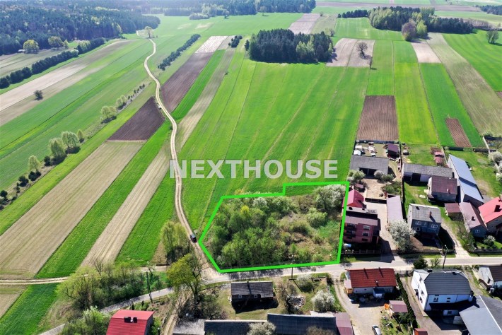 Działka o kształcie zbliżonym do kwadratu porośnięta „samosiejnymi” drzewkami i krzewami (bez konieczności zgłaszania wycinki).