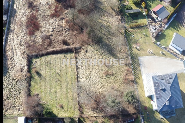 działkę budowlaną o powierzchni 1831m2 o nieregularnym kształcie. Wjazd na działkę o szerokości 14m, w dalszej części działka ma