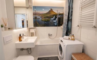 Łazienki z wanną oraz toaletą;