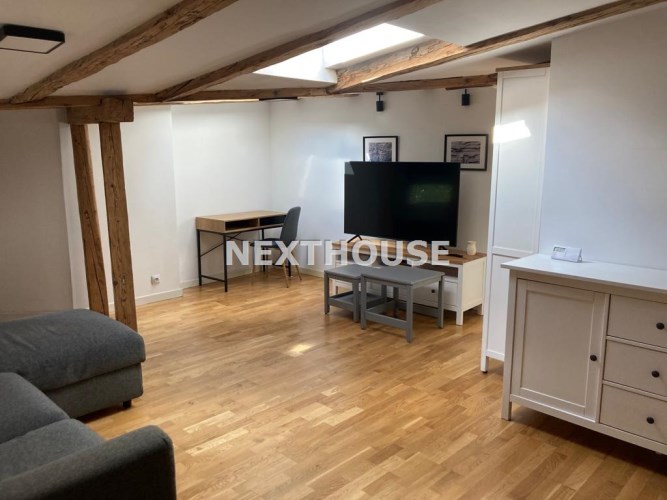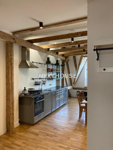 2) na IV piętrze w kamienicy w Centrum Gliwic. Mieszkanie składa się z salonu, sypialni, dużej kuchni z jadalnią, łazienki i pomieszczenia gospodarczego. Kuchnia zabudowana sprzętem AGD (lodówka, kuczenka gazowa, piekarnik, okap, zmywarka). W łazience kabina prysznicowa, umywalka i wc. Ogrzewanie mieszkania i wody za pomocą pieca dwufunkcyjnego.