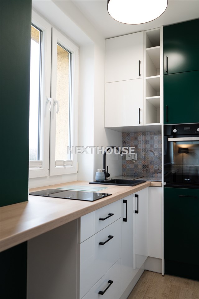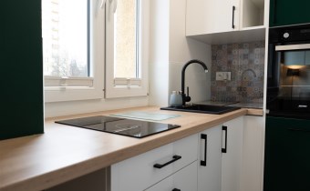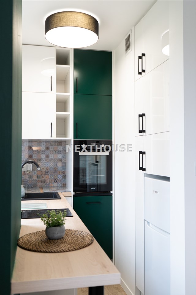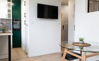 Do dyspozycji najemcy pozostaje również piwnica. Okna mieszkania wychodzą na zieleń i stronę przeciwną do głównej drogi, co gwarantuje wyjątkową ciszę.