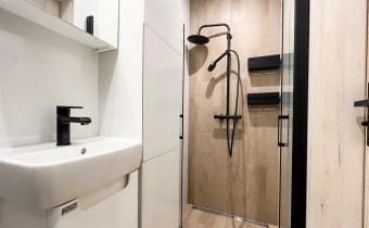 Łazienka: nowoczesna, z WC i prysznicem.