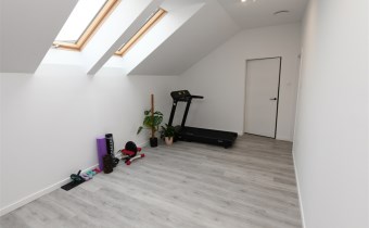Piętro oferuje trzy komfortowe sypialnie, z czego dwie wyposażone są w praktyczne garderoby. Znajdziesz tu również przestronne,funkcjonalne biuro, siłownię, pralnię oraz wygodną i funkcjonalną dużą łazienkę, dzięki czemu każdy członek rodziny znajdzie swoją przestrzeń. Dodatkowe miejsce do przechowywania oferuje zaś poddasze,idealna przestrzeń na ubrania sezonowe i inne drobiazgi.