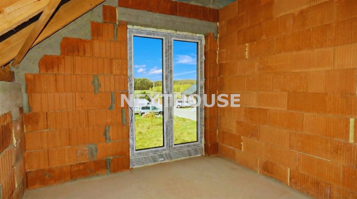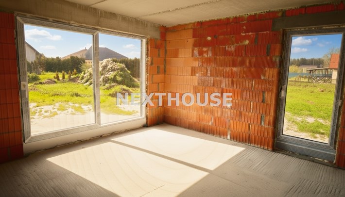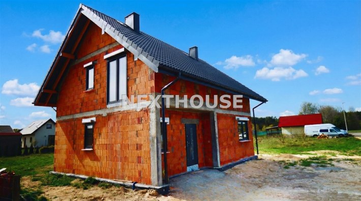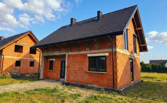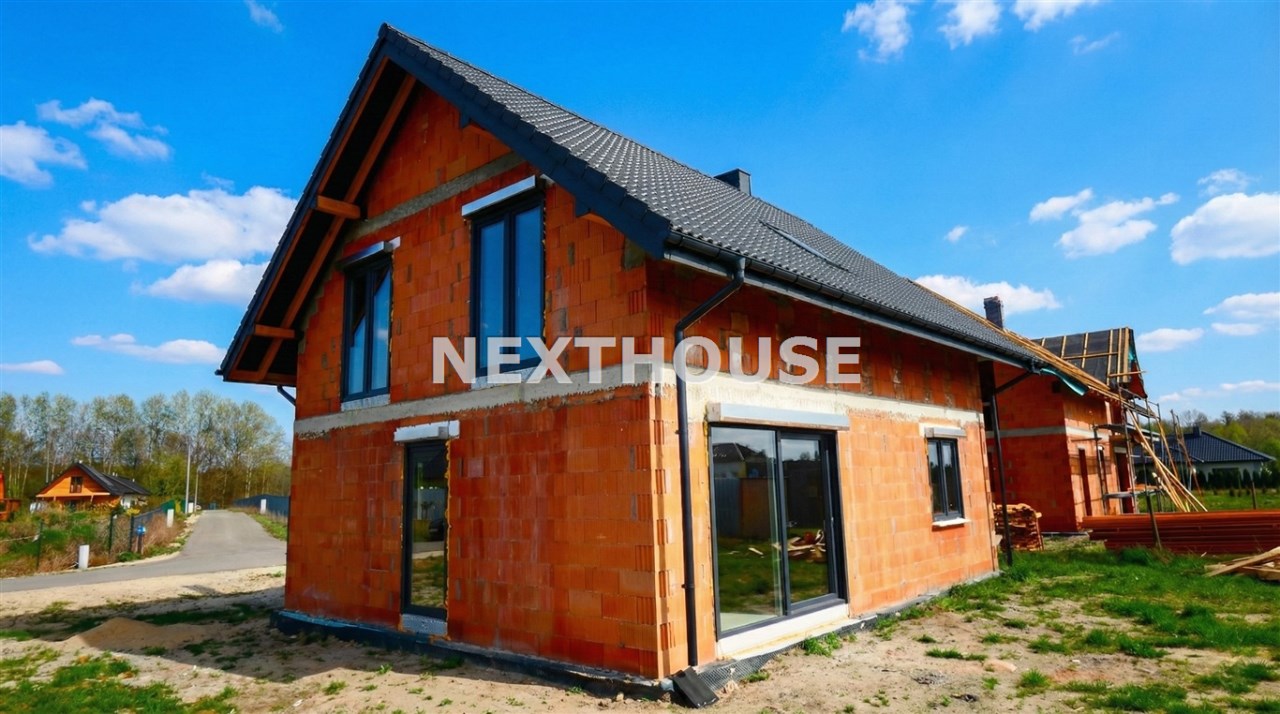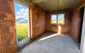 Dom usytuowany na nowym osiedlu domów jednorodzinnych w cichej i spokojnej okolicy w otoczeniu łąk oraz lasów.