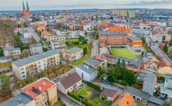 Nieruchomość jedyna w swoim rodzaju .Wszędzie blisko a jednocześnie cicha i zielona okolica. Dodatkowym atutem jest piękny ogród ,który można również wykorzystać na miejsca parkingowe dla mieszkańców lub postawić kilka garaży.,albo wydzielić ogródki dla poszczególnych mieszkań. Kamienica usytuowana jest w ciągu innych budynków dzięki czemu nie mamy strat ciepła ścian bocznych . Sąsiednie nieruchomości są wyremontowane, ogrzewane i zamieszkałe co daje nam dodatkowe źródło ciepła. Mniejszy ogródek przed kamienicą stanowi idealną barierę od chodnika ,oraz jezdni( można również przerobić na dodatkowe miejsca parkingowe) . Ulica przy której znajduje się budynek , jest jak na ścisłe centrum miasta bardzo cicha o średnim natężeniu ruchu. Działka o wielkości 567 metrów kwadratowych jest jedną z większych w tej okolicy. Kamienica składa się z trzech kondygnacji : parter około 60 metrów, pierwsze piętro około 85 metrów, oraz drugie piętro o powierzchni użytkowej około 95 metrów kwadratowych co daje w przybliżeniu razem 240 metrów kwadratowych- przestrzeni użytkowej .Układ pomieszczeń, podpiwniczenie budynku a także dostęp do wszystkich mediów dają możliwość podziału mieszkań na mniejsze. Cały budynek jest ogrzewany piecem węglowym 5 klasy na ekogroszek (podajnik ładowany maksymalnie dwa razy w tygodniu).