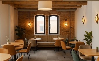- nowoczesną restaurację lub przestrzeń gastronomiczną z antresolą,