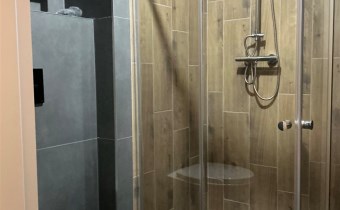 łazienka wyposażona z WC wyposażona w kabinę prysznicową,