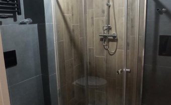 łazienka wyposażona z WC wyposażona w kabinę prysznicową,