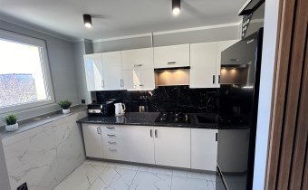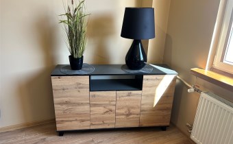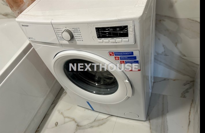 Wnętrze jest w pełni umeblowane nowymi meblami oraz wyposażone w nowy, nieużywany sprzęt AGD: pralkę, lodówkę, piekarnik, mikrofalówkę i kuchenkę gazową. Całe wyposażenie pozostaje w cenie mieszkania.
