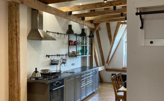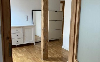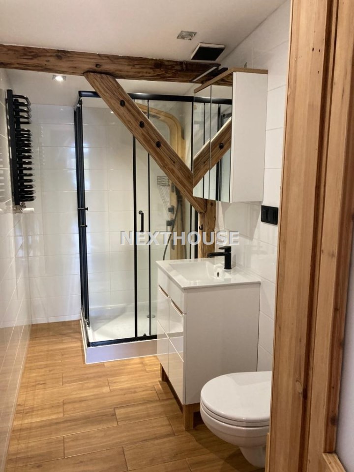 2) na IV piętrze w kamienicy w Centrum Gliwic. Mieszkanie składa się z salonu, sypialni, dużej kuchni z jadalnią, łazienki i pomieszczenia gospodarczego. Kuchnia zabudowana sprzętem AGD (lodówka, kuczenka gazowa, piekarnik, okap, zmywarka). W łazience kabina prysznicowa, umywalka i wc. Ogrzewanie mieszkania i wody za pomocą pieca dwufunkcyjnego.