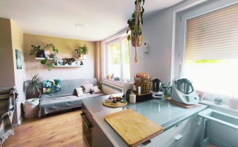 Dwustronnie rozkładowe mieszkanie usytuowane na parterze bloku po termomodernizacji składa się z: