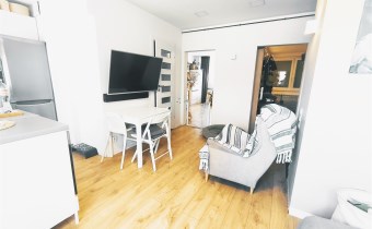 Jasnego salonu połączonego z umeblowaną kuchnią