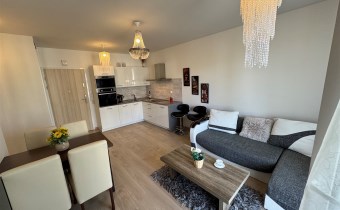 Oferujemy Państwu do sprzedaży komfortowy kompletnie umeblowany i wyposażony apartament dwupokojowy z dużą loggią/8,5 m2/,usytuowany na drugim piętrze czteropiętrowego budynku z windą z 2018 r.w Kołobrzegu w dzielnicy Podczele.Ogrzewanie i ciepła woda miejskie.Lokal wyposażony w sprzęt AGD:płyta indukcyjna,lodówka,piekarnik,kuchenka mikrofalowa,pralka,telewizor,zastawa stołowa.Teren zamknięty,ogrodzony,monitorowany i chroniony,okolica cicha i spokojna z dala od zgiełku miasta w odległości zaledwie 400 m od morza.Apartament jest częścią zamkniętego i monitorowanego osiedla z własnym zapleczem sportowo-rekreacyjnym/bezpłatnym dla właścicieli/,czynnym każdego dnia w godzinach 7-21,w skład którego wchodzi kompleks basenów:zewnętrzny i kryty,wraz z sauną,jacuzzi,centrum fitness,bawialnią dla dzieci,a także placem zabaw dla dzieci,rowerownią oraz parkingiem z bezpłatnymi naziemnymi miejscami.W bliskiej odległości:sklepy,przychodnia lekarska,kościół,szkoła,wypożyczalnia rowerów,restauracje,bary,przystanek komunikacji miejskiej.Od dzielnicy uzdrowiskowej Kołobrzegu oddzielają nas urzekające rozlewiska Eko-parku Wschodniego Natura "2000"z unikalną fauną i florą,którędy przebiega jedna z najdłuższych,malowniczych ścieżek rowerowych w Europie.Niskie koszty eksploatacyjne opłaty miesięczne to kwota ok 350 zł.,opłaty za kompleks rekraacyjno-basenowy to kwota ok 450,00 zł.Cena do negocjacji.W cenie zakupu garaż 16,8 m2 pod budynkiem.Zapraszamy na prezentację.